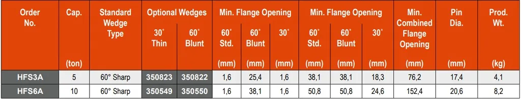 ˙Use HFS6A if total thickness of flanges and max. spread gap is 6" or less, and flange bolts are a min. of 0.81" Dia.
